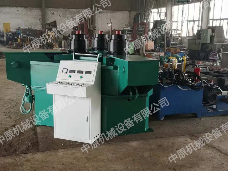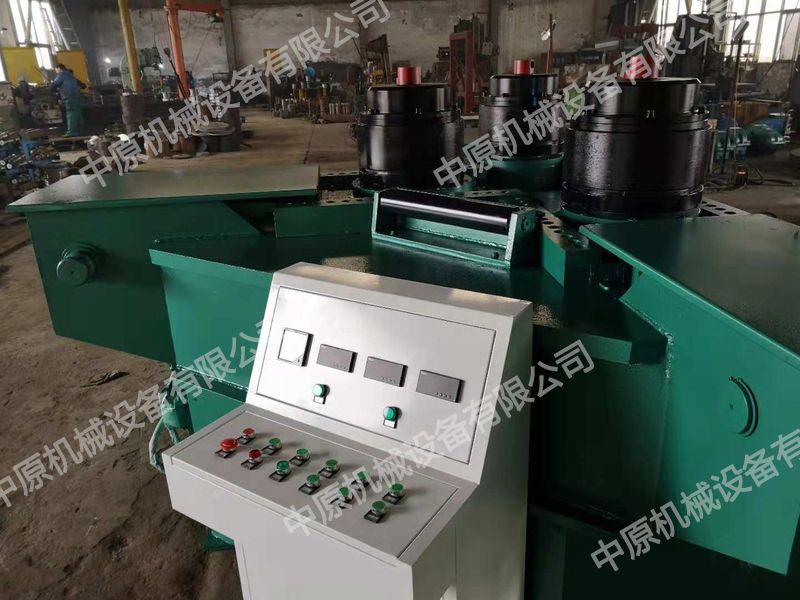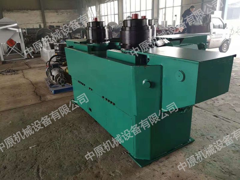 該機為叁輥型材卷圓機,集機電一體。電機輸出的較高轉(zhuǎn)速通過傳動裝置(聯(lián)軸器,液壓馬達,液壓油缸,齒輪等)轉(zhuǎn)換成所需的大扭矩低轉(zhuǎn)速,帶動兩主動輥實現(xiàn)旋轉(zhuǎn)運動,為型材行走提供扭矩。兩個主動輥中心距可調(diào),被動輥通過液壓油缸前進、后退實現(xiàn)位移,來控制直徑大小。三個工作輥成等腰三角形分布,通過調(diào)整移動輥實現(xiàn)這三個點形成的弧線達到所需彎曲半徑,借助被動輥的壓緊及兩主動輥的旋轉(zhuǎn)運動,使型材經(jīng)過多次連續(xù)彎曲,產(chǎn)生永久性塑性變形,用于常溫狀態(tài)下將型材卷制成圓形,弧形等工件。微信圖片_20180727095250