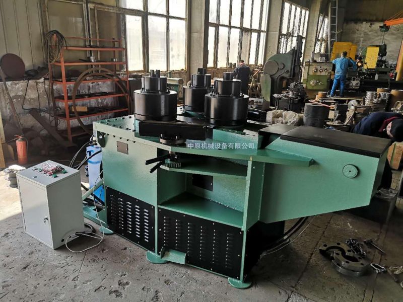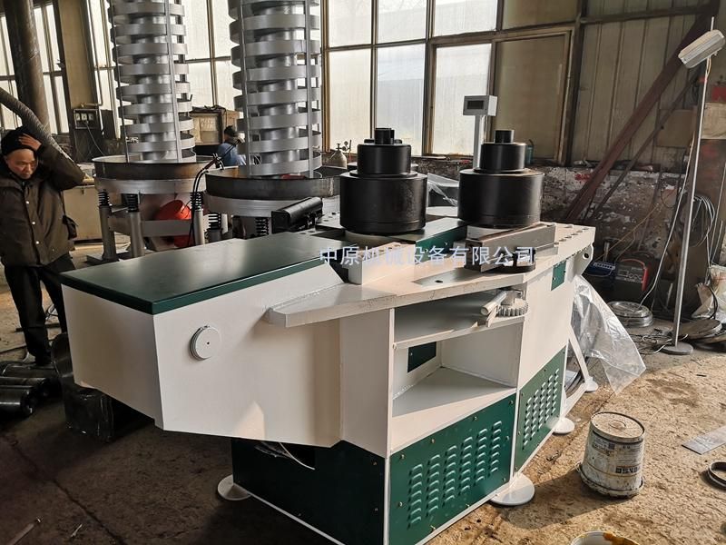 床身采用鋼板焊接件,焊后經(jīng)過(guò)退回火等熱處理工藝,消除焊接應(yīng)力,保證加工精度。床身為一封閉式框架結(jié)構(gòu),驅(qū)動(dòng)兩輥位置固定,可以進(jìn)行正反方向旋轉(zhuǎn),油缸推進(jìn)模可前后移動(dòng),兩固定模的轉(zhuǎn)動(dòng)為液壓傳動(dòng)、由液壓馬達(dá)驅(qū)動(dòng)。推進(jìn)模由液壓油缸的伸縮來(lái)完成。傳動(dòng)平穩(wěn)、安全可靠;在固定模的兩側(cè)設(shè)有托輥裝置,托輥既可以做升降運(yùn)動(dòng),也可以做旋轉(zhuǎn)運(yùn)動(dòng)。配合模具與導(dǎo)向輪同時(shí)作用有利于控制型材的卷制精度。